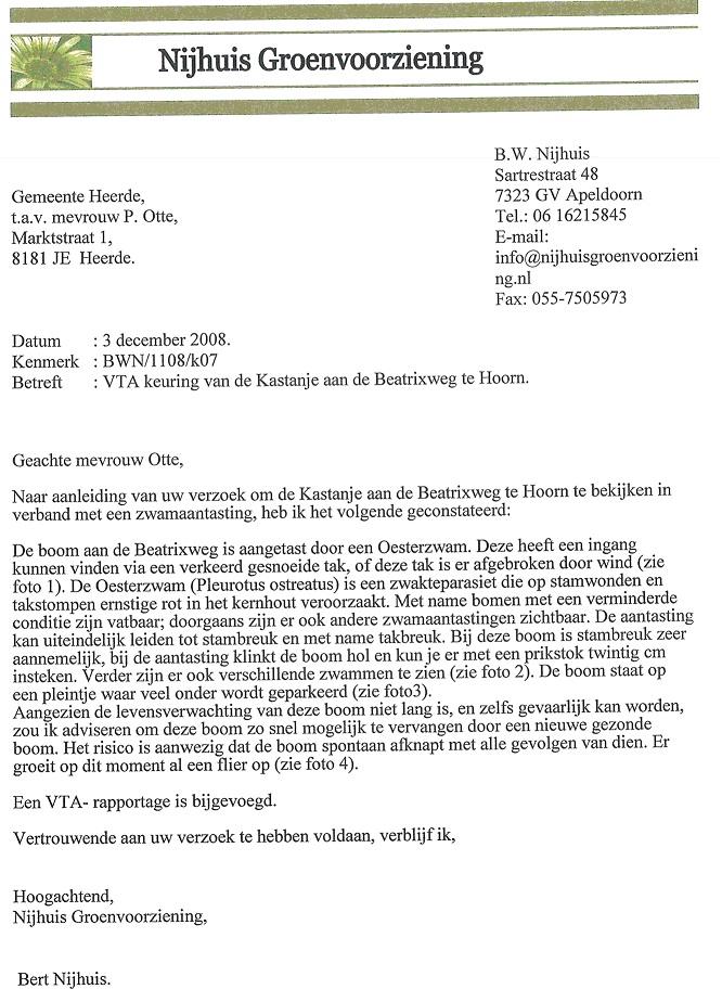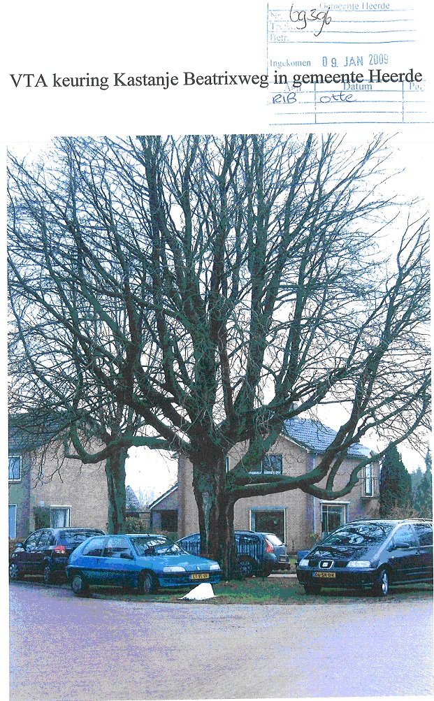 Binnenkort publiceert de gemeente Heerde een aanvraag om een kapvergunning. “De bevolking zal zeer teleurgesteld zijn maar we kunnen gewoon niet anders”, aldus de wethouder. Die wel direct de belofte doet dat er een nieuwe, redelijk forse boom geplant wordt als de huidige kastanjeboom is verdwenen. De Beatrixboom lijdt overigens niet aan de kastanjebloederziekte, de beruchte boomziekte die de afgelopen jaren al talloze, vaak beeldbepalende kastanjes, heeft geveld en waar tot nog toe geen remedie voor is.