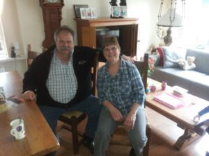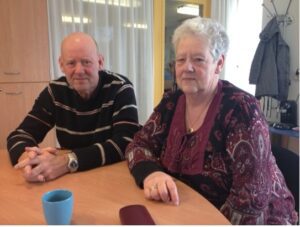 Vorig jaar is de pen door Gerda en Ab doorgegeven aan Geertje en Gerrit. Ik bel hun dan ook met de vraag of ze hun verhaal aan mij willen vertellen. Geertje bel ik als eerste en zij geeft aan dat we de volgende ochtend bij haar op de koffie mogen komen. Vervolgens bel ik Gerrit; ook hij is in voor een praatje en zal de volgende ochtend ook bij Geertje komen.